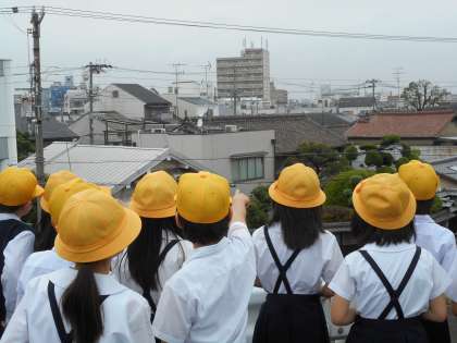 雨の心配がありましたが、曇り空のもと、校区探検をしました。校区にある新淀川の堤防に行きました。堤防からは、JRや高速道路、国道2号線、阪神電車が見えました。校区を歩いてみると、新しい発見がありました。
