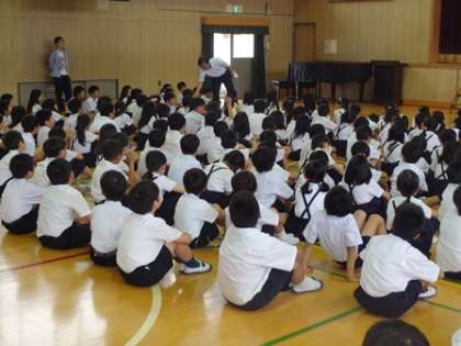 遅くなりました。月曜日の児童朝会の様子です