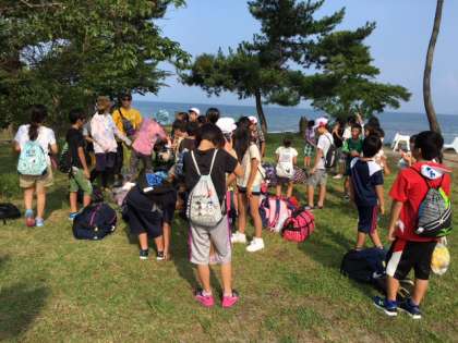 湖水浴を終え、シャワーの後のジュースのおやつです。