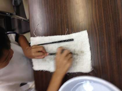 まず指導員の方からお話を聞いて、砥石で磨いていき、模様をだします。
