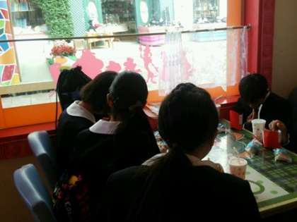 グループで楽しそうにメニューを選んでいます。