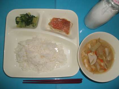 赤魚のしょうゆだれかけ みそ汁 おおさかしろなのごまあえ