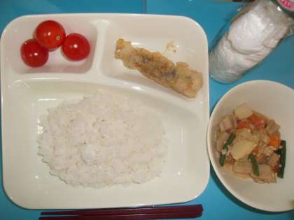 まだらのからあげ さといもと野菜のみそ煮 プチトマト