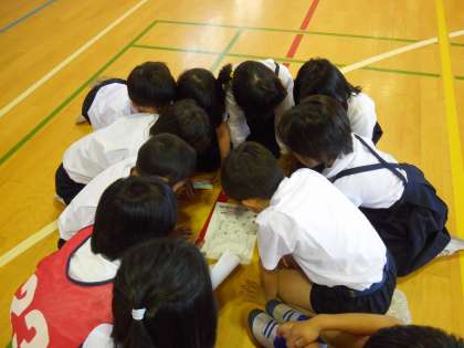 本日の児童集会は、24日にある全校オリエンテーリングの話し合いをしました。たてわり班でポイントを回るので、地図を見て、ポイントの回り方などを話し合いました。全校オリエンテーリングを楽しみに。