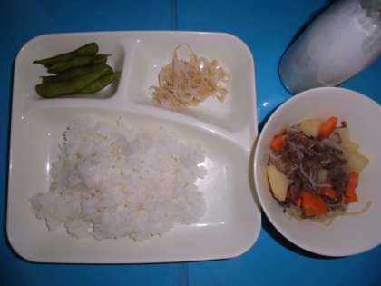 肉じゃが もやしのゆずの香あえ 枝豆