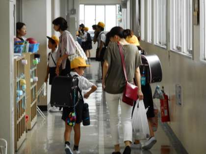 9月6日に地震、津波を想定しての避難訓練をしました。まず地震が発生したとして運動場に一時避難し、その後津波警報が発令したと想定し、4階の廊下へ2次避難しました。下校は、保護者の引き渡し訓練として行いました。どの児童も真剣に訓練をしていました。「自分の命は自分で守る」として行動してほしいです。