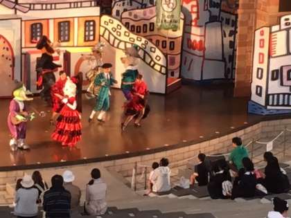 スペイン村では、ショーを見たり、アトラクションに乗ったりして楽しく活動しました。