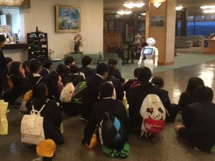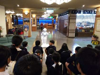 ロビーでお出迎えをしてくれたのは、ロボットです!!