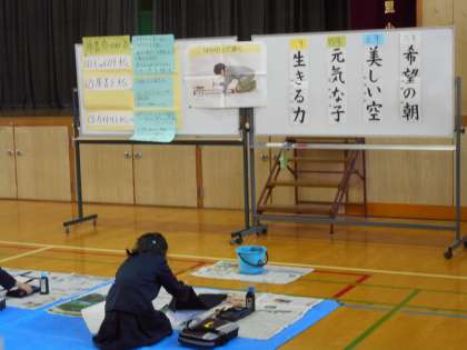 講堂を会場として、3年から6年生が席書会を行いました。学年ごとに講堂に集まり、各学年の課題の字を書きました。静粛な雰囲気の中、集中して力強い文字を書いていました。来月には展示会をします。お楽しみに。