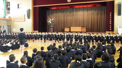 本日は始業式。教職員の着任式の後、始業式を行いました。担任発表の時には、子どもたちが大変盛りあがりました。その後、1年生と在校生との対面式を行いました。児童会の代表児童が歓迎のことばを述べたあと、1年生が元気よく「よろしくお願いします。」と、返答しました。花のアーチを歩いているときの表情がとてもかわいかったです。