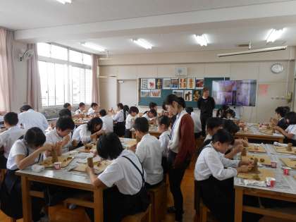近つ博物館からゲストティーチャーをお招きして、埴輪の学習をしまた。いろいろな埴輪があることを知った後、自分たちで埴輪を作りました。人馬や鳥などの動物、船など、個性あふれる埴輪ができました。教室に飾っていますので、来校時にご覧ください。