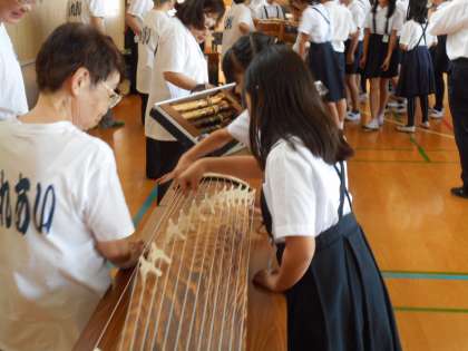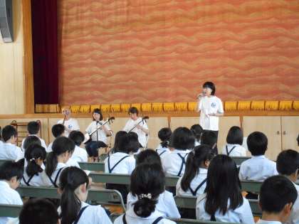 5・6年生を対象に、伝統音楽会を行いました。三味線、太鼓、琴、、尺八などの楽器を使った演奏を聴いた後は、民謡「ソーラン節」を教えてもらい、皆で歌いました。日本の伝統楽器や伝統芸能を味わうことができ、貴重な体験でした。地域の方々にも鑑賞してもらいました。最後は、三味線や太鼓、琴などの楽器に実際に触れる時間があり、子どもたちは音色を出そうと挑戦しましたが、なかなか苦労していました。貴重な体験をさせていただいた皆さんに感謝です。