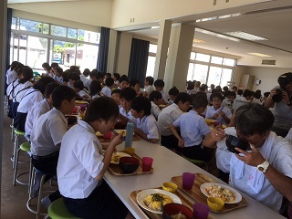 午前の湖水浴を終え、昼食をいただいています。この後、荷物整理、閉舎式を行い帰路につきます。
