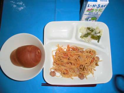 豚肉とウインナーを使ったイタリアンスパゲッティは子どもたちに大人気でした。