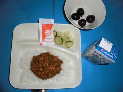 「キーマ」とは「細切れ肉」とか「ひき肉」という意味です。今日はひきわりの大豆も一緒に入れています。子どもたちは大喜びで食べていました。