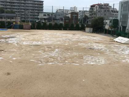 今年度も運動場ににがりを散布し、グランド整備を行いました。