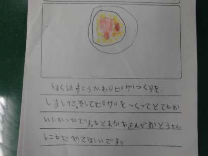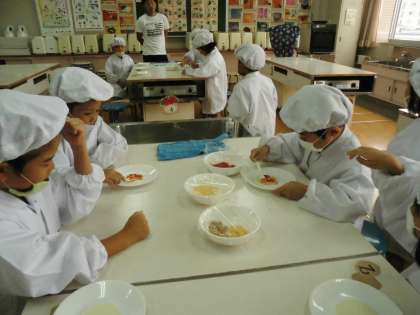 生活科で栽培したトマトを使って変わりピザを作りました。みんなで協力してとてもじょうずに作りました。「おいしい」という声がたくさん聞こえてきました。