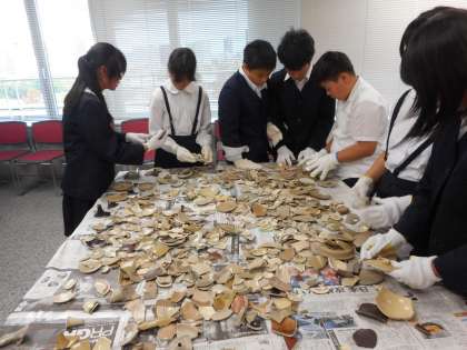 大阪歴史博物館へ行き、考古学体験教室に参加しました。瓦の拓本体験、出土した土器等の破片を組み合わせる体験などを行い、考古学の一端を学び体験しました。貴重な体験ができてよかったです。