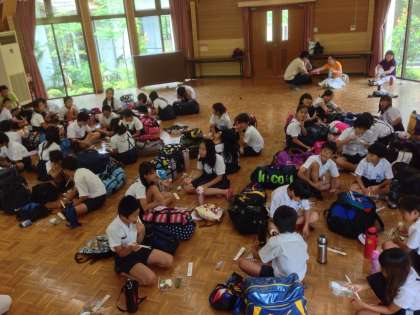 11時15分に無事に宿舎に到着しました。昼食をおいしくいただきました。開舎式も行いました。