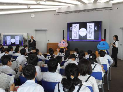 朝日新聞大阪本社へ行き、新聞ができるまでの学習をしました。編集部、写真部、デザイン部、記者部など、いろいろな部署の仕事を見学し、新聞づくりの苦労や工夫を学ぶことができました。