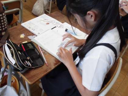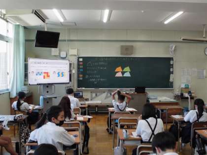 今日は教科書に添付されている図形を自分で操作して四角形を敷き詰めることができるのか。という学習をしました。丁寧に切り取ったり回転させたりしながら敷き詰める方法を考えることができました。