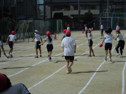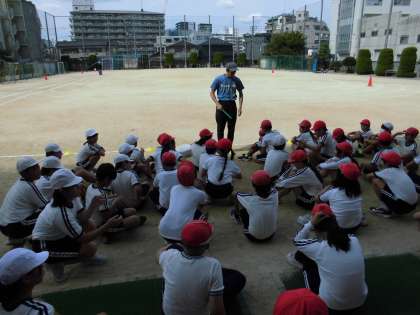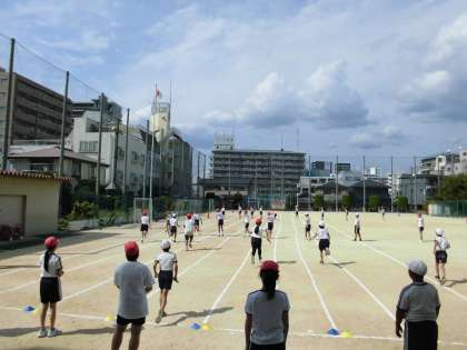 リレーの練習を行いました。暑い中だったので、日陰を活用したり給水タイムを取ったりしながらしながら短時間で学習を進めています。