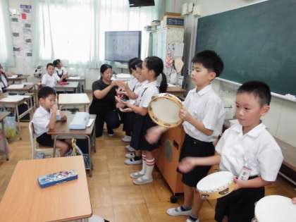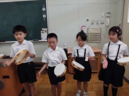 リズム打ちをしています。2拍子のリズムに乗って上手にできています。
