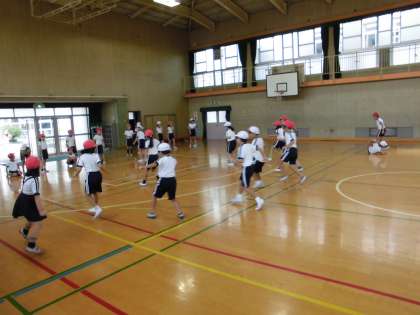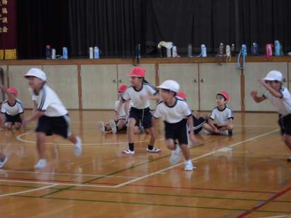 いろいろな走り方を行っています。運動会の競技にも関係しているかもしれません。しっかり走って一歩リードしよう!