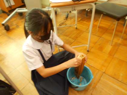乾燥したヘチマからもスポンジが作れるか試しています。自然の植物から生活に必要な用品を作り上げることができる知識や経験を大切にしたいと思います。