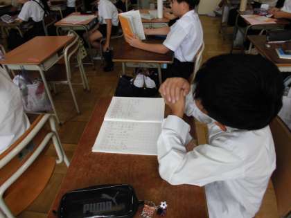 漢字を正確に覚えるにはどうすればよいか。丁寧に書くにはどうすればよいのか。単に宿題をこなすだけでなく、自分でノートを工夫したり書く回数を増やしたりすることで覚えることができるということをお手本のノートを検証しながら話をされていました。