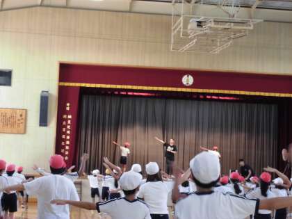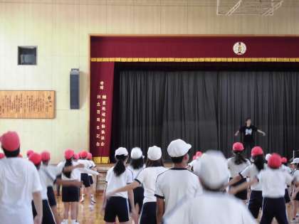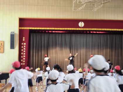今日は、高学年・低学年に分かれて、「足はやダンス」をする日です。