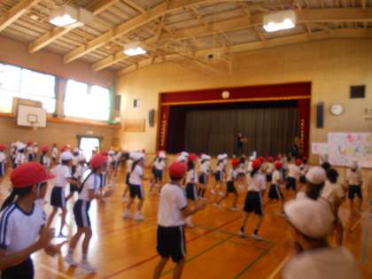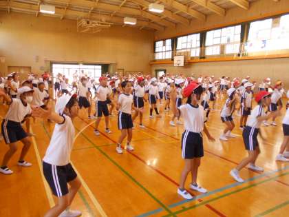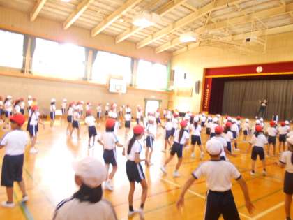 高学年の足はやダンスは、足の入れ替えや腿を上げて股関節の可動域を広げる動きなど、説明を聞きながら運動しました。運動会本番までにキレのあるダンスに仕上げたいと思います。
