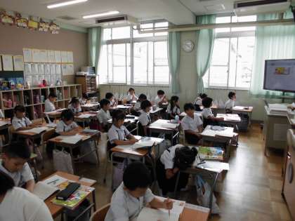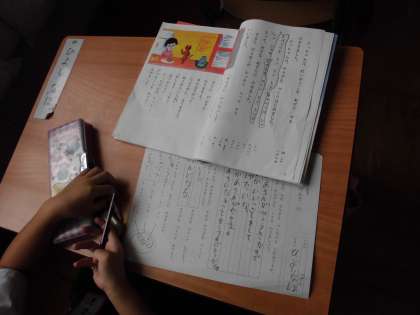 サラダでげんきの学習を行っています。考えたことを書いたり書いてあることを抜き出したりしています。