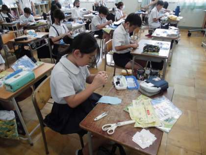 小物づくりの続きをしています。完成する児童も出てきました。