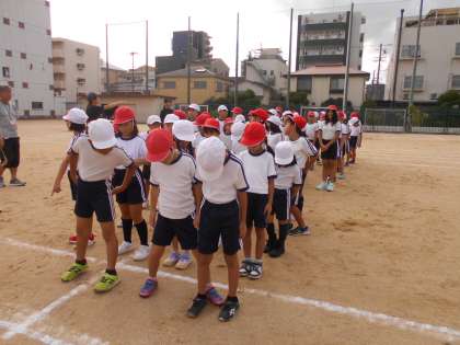 運動会の練習です。並び方から移動の仕方、どんどん上達してきています。4列をそろえて駆け足で移動することもできてきました。本番が楽しみです。