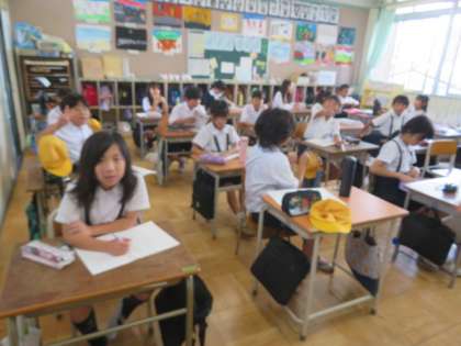 提出物、連絡帳、心の天気を済ませ、読書タイムの準備です。作品展への準備も少しずつ進めていきます。