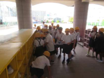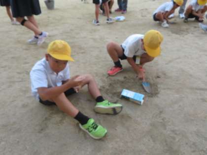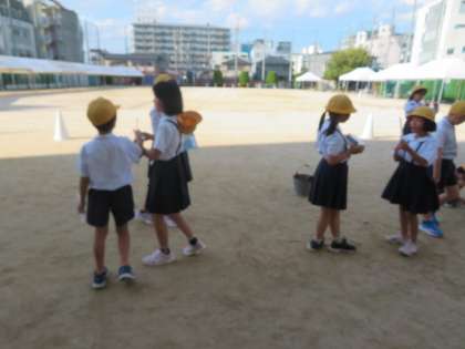 ひなたとひかげの気温は違うのか、実際に校庭に出て調べてみました。温度計の使い方を確かめ、気温をはかることができました。