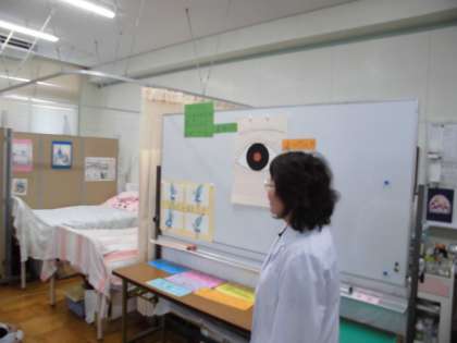 今日は視力検査がありました。まず石井先生から目の健康についてお話がありました。