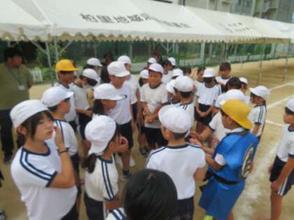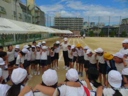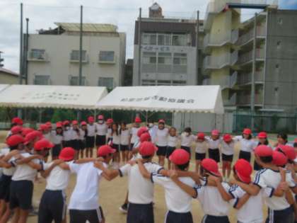 騎馬戦の最終練習です。動きを確かめて、作戦タイムも入念にしています。さあ、本番に向けて、みんなで一致団結しましょう。赤も白も両方がんばれ!