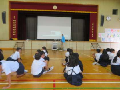 大型モニターを使って動画を視聴しました。大阪市の水道水についてより深く学ぶことができました。