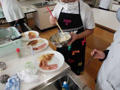 いよいよ完成です。家でお手伝いしている子は包丁の使い方などとても上手でした。今日学んだことを生活の中で実践してほしいと思います。