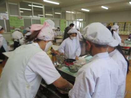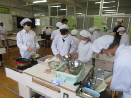 調理実習で協力しています。