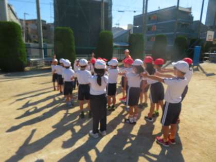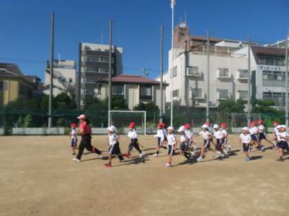 準備運動、かけあしタイムに向けての練習、ボールゲームに向けての投げる練習をしました。ボールを持つ手、投げる時に出す足など、動作の確認をしてしっかり投げられるようになった人が増えました。難しい人もゆっくりでいいので練習しましょう。