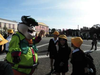広いパーク内を探検しています。見つけたら記念撮影です。