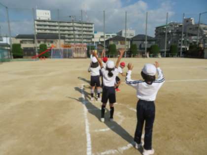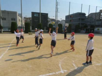 シュートを見方がキャッチしたら得点になるようです。自分のチームに必要な練習はどんな練習なんでしょうか?自分たちのチームをまずは知りましょう。投げるのが得意、捕るのが得意、相手のシュートをブロックするのが得意、相手の動きを言葉で伝えるのが得意、などなど。みんなで話し合ってみましょう。