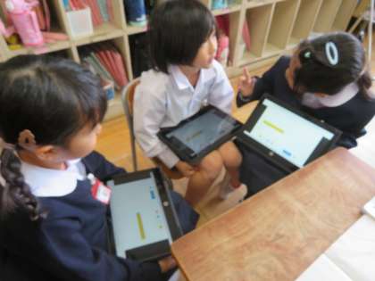 引き算の計算のしかたについて、いろいろな考え方でできるように個人パソコンを使って考え方がわかるようにともだちに説明したり、学習したりしています。