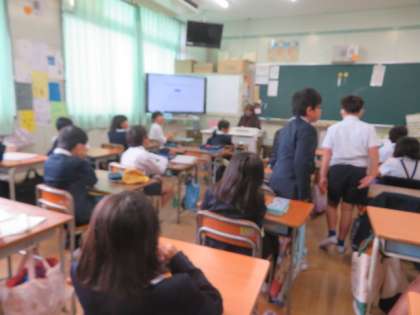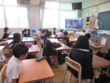 リモート朝会では作品展のことについてお話がありました。朝会が終わって学級で朝の会が始まります。
