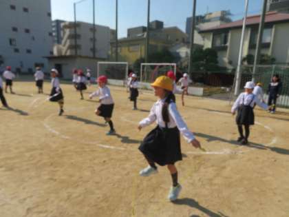 今日から12月上旬まで、なわとびタイムです。1曲目は基礎的な跳び方を反復練習し、2曲目は新技、難技チャレンジです。さあ、みんなのチャレンジする技はどんな技なのでしょうか?友だちと仲良く協力しながら努力し、なわとびで心も体も温まりましょう。跳べるようになった技は、カードに記録しましょう。