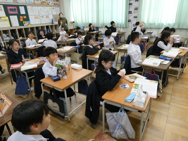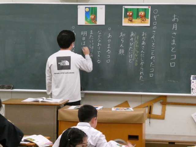 道徳の学習です。登場人物の気持ちや取るべき行動を考えながら取り組んでいます。
