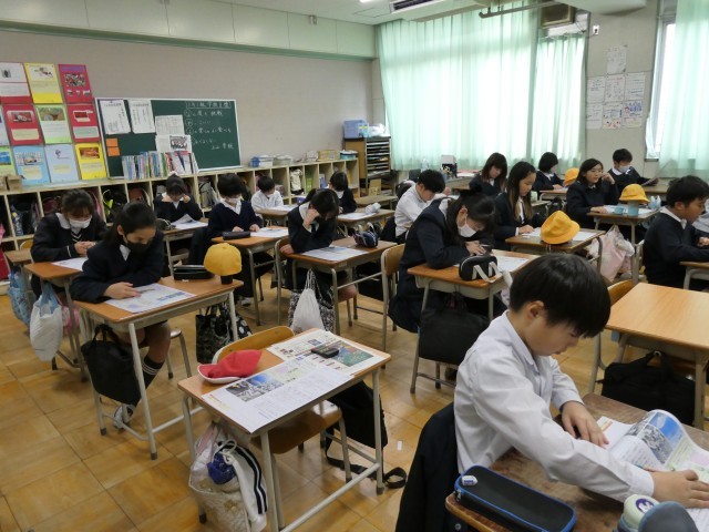今日はテストです。工業の学習ですが、表やグラフを見て答えるという難しい学習ですが、子どもたちはグラフのタイトルや表の数値を見て真剣に問題に向き合っていました。素晴らしいです。